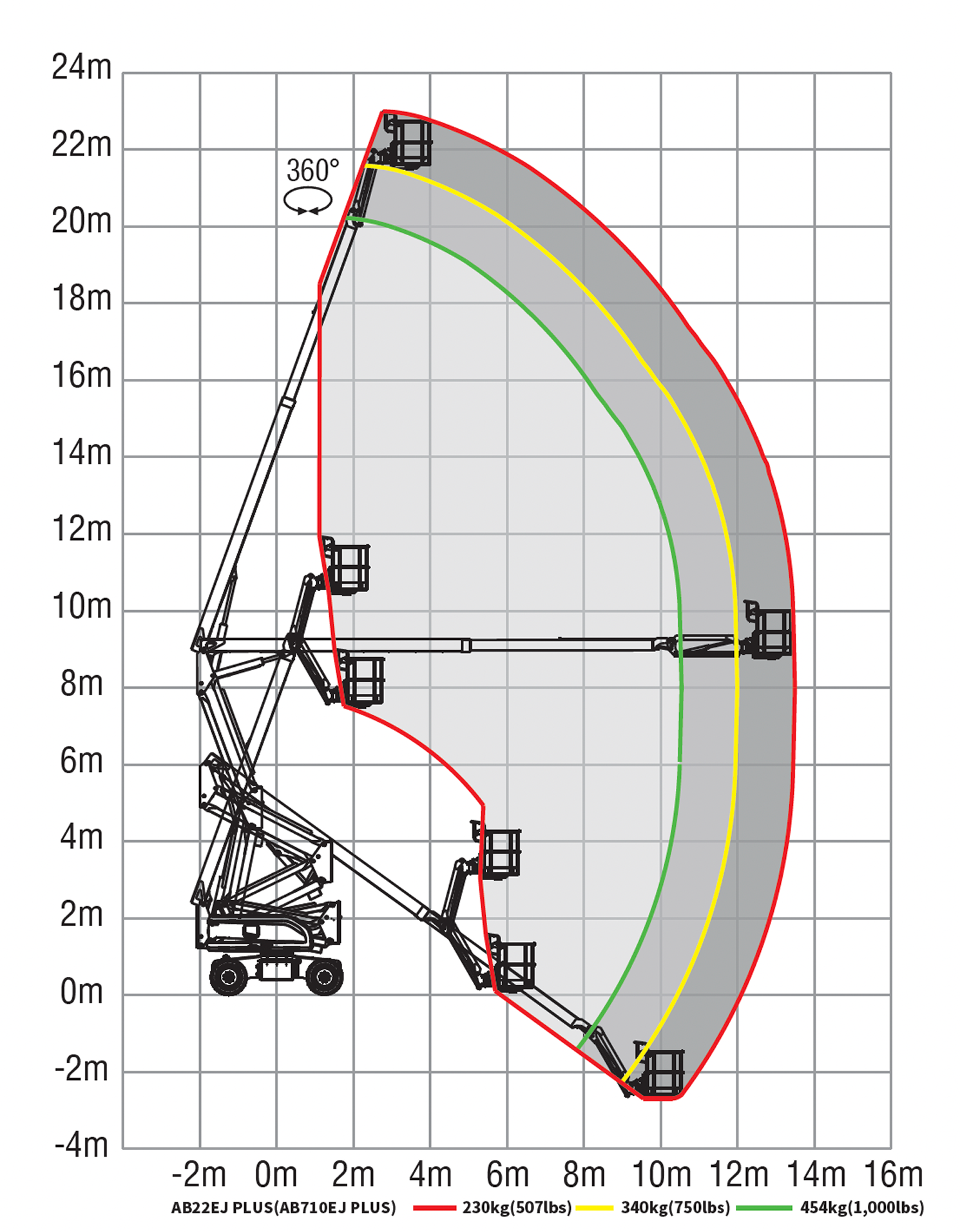 * Diese Arbeitsbühne verfügt über einen beweglichen Korbarm.